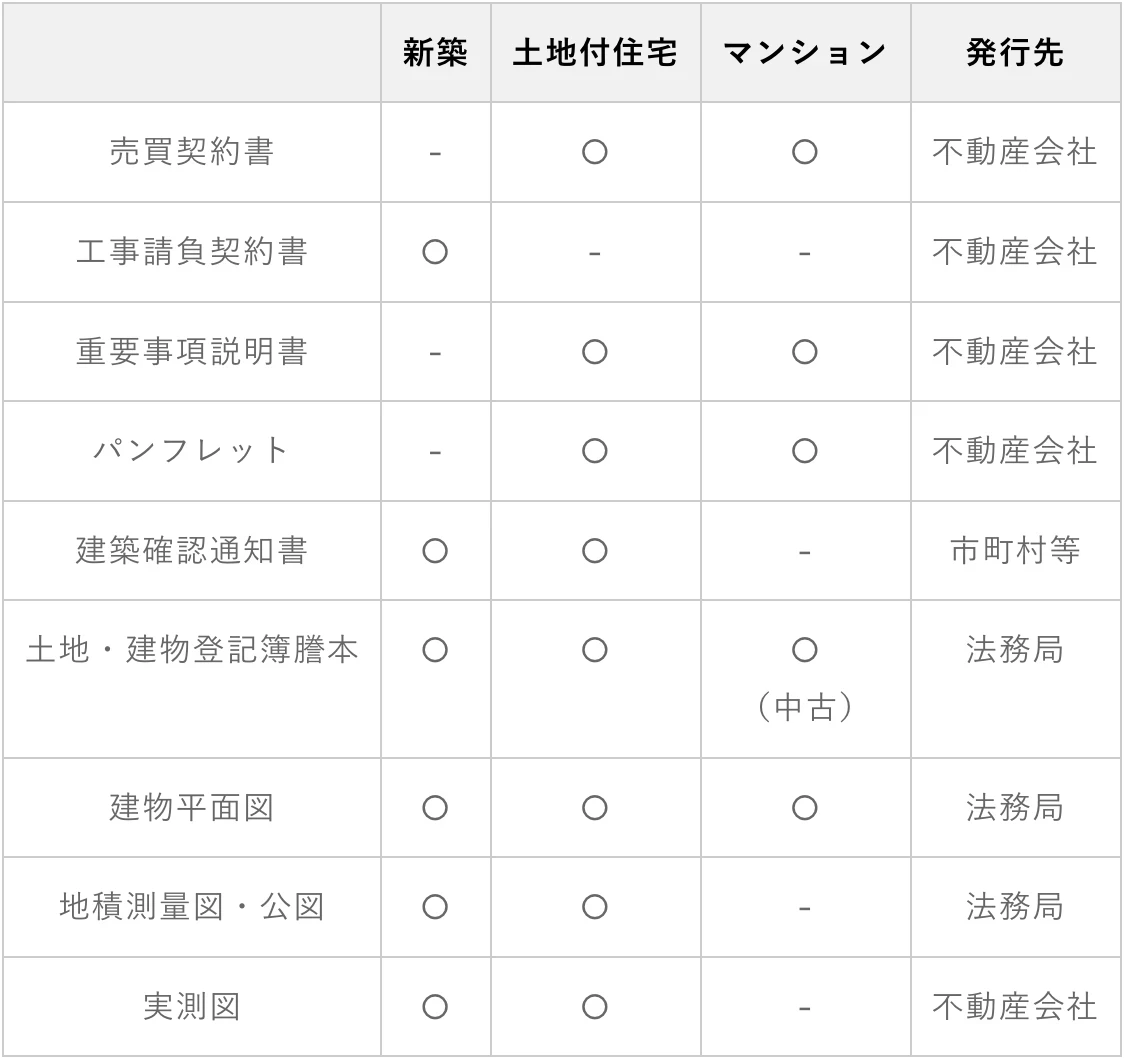 申込み時に必要になる書類や通数は、金融機関ごとに異なりますので、予め確認をするようにしましょう。各金融機関所定の書類以外で必要になる主なものは以下のようになります。発行してもらうことが必要な書類については、早めに準備するようにしましょう。特に、複数のローンを利用する場合などは同じ書類が、複数必要になることもあります。事前に通数など、よく確認し、まとめて準備すると良いでしょう。